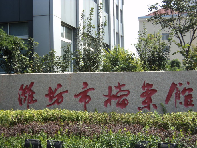 潍坊市档案馆成立于1963年,是潍坊市集中保管重要档案的基地、爱国主义教育基地和政府公开信息查询服务中心、档案信息查阅服务中心。2010年9月晋升为国家一级档案馆。 现馆藏档案资料30万卷册件。其中档案25万卷件,资料5.4万件册。